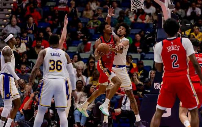 比赛伊始,鹈鹕队似乎并未受到四连败阴影的过多影响,反而展现出了背水一战的决心。在缺少核心得分手的情况下,他们的进攻显得更加团队化,也更加出人意料。后卫费尔斯成为了场上的防守尖兵,他如同一只不知疲倦的猎豹,全场贡献了惊人的8次抢断,一次次撕扯着湖人的进攻体系。而墨菲则扛起了得分大旗,他手感滚烫,在外线频频发炮,一次次将球空心送入网窝。他的每一次得分,都像是在为这支困境中的球队注入一针强心剂。